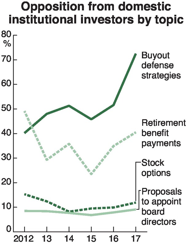 A: There has been a big change in the attitude of institutional investors. In 2017, the Financial Services Agency revised the Stewardship Code, which contains conduct guidelines for institutional investors, asking them to make public whether they supported or opposed companies' proposals at shareholder meetings.
