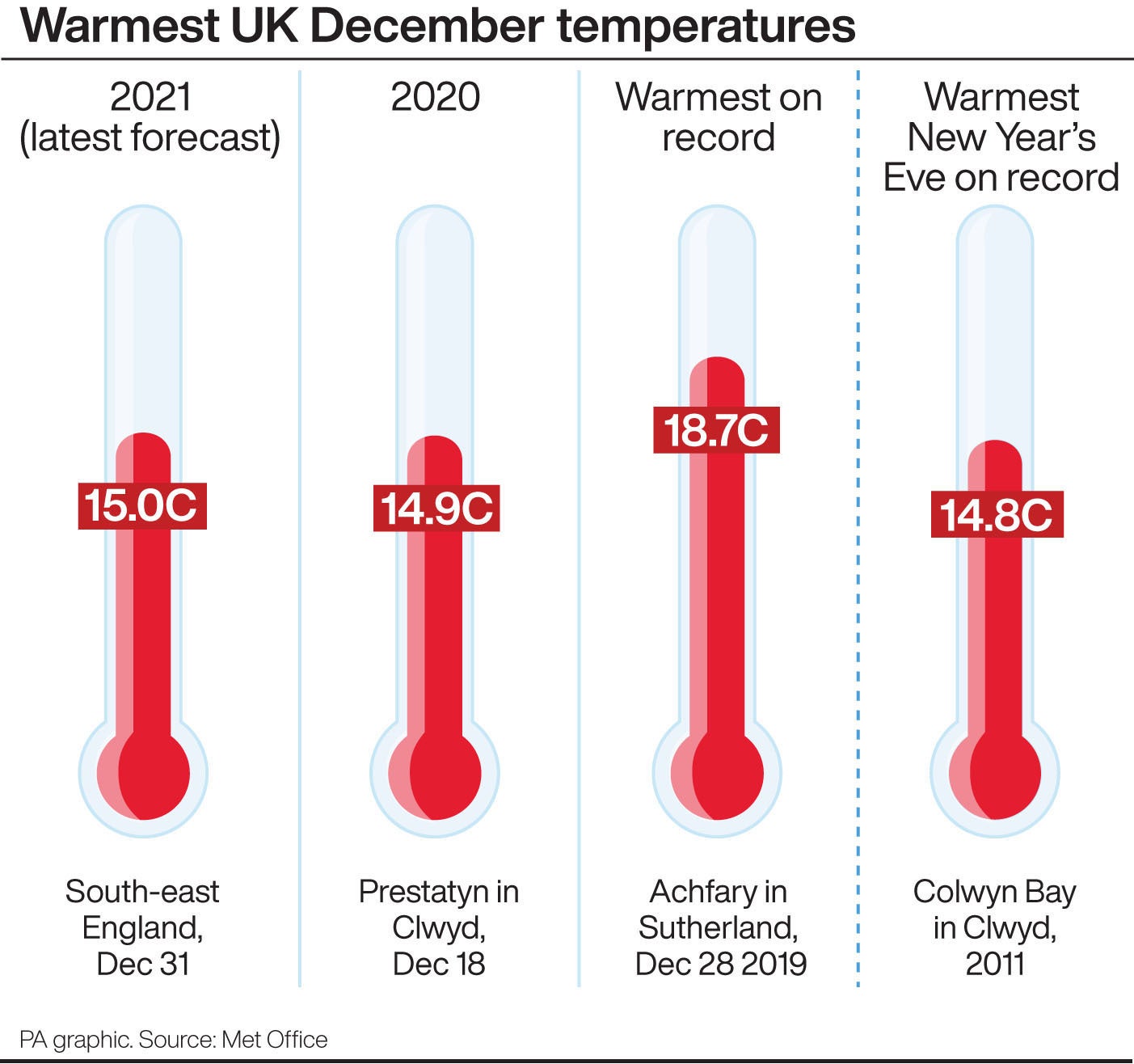 The Met Office spokesman said the December record for England is 17.7C in 1985, while for the UK as a whole it was 18.7C in 2019 in Scotland.