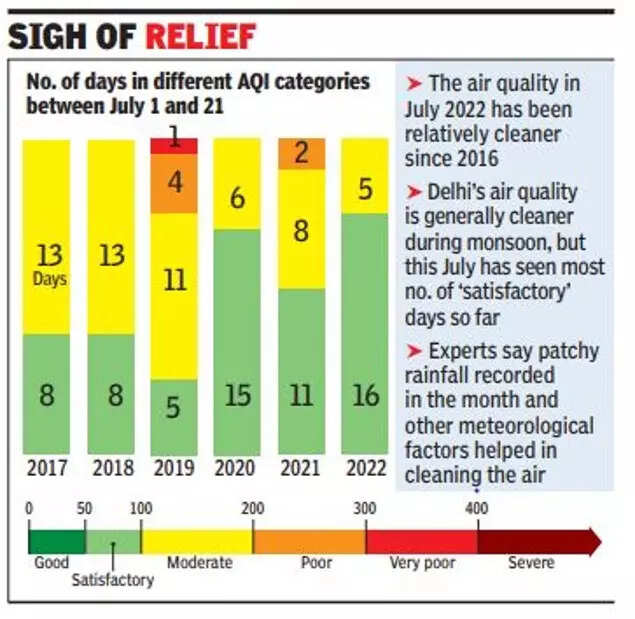 So far, July 2022 has seen 16 ‘satisfactory’ air quality days compared with 11 in July 2021 and 15 in July 2020, according to Central Pollution Control Board’s data.