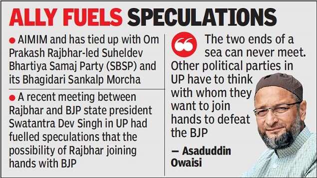 HYDERABAD: The political turf is heating up in Uttar Pradesh ahead of elections to the state assembly early next year, All India Majlis-e-Ittehadul Muslimeen (AIMIM) president and Hyderabad MP Asaduddin Owaisi on Wednesday ruled out an alliance with BJP.