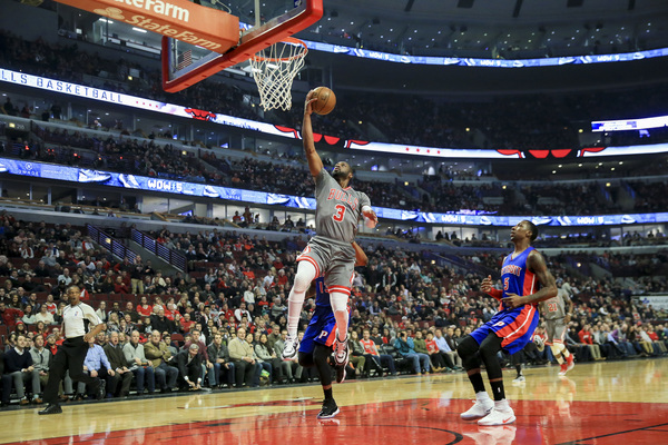 Joffrey Lauvergne added 17 points and seven rebounds and Jimmy Butler 16 points and 12 assists for the Bulls, who had five players score in double figures and shot 58.8 percent from the floor. The Bulls improved to 34-28, tying the Pistons. They moved one game behind the Heat for the eighth playoff spot.