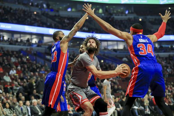 Even without Lopez _ who missed his first game of the season _ and Felicio, the Bulls dominated down low as they outscored the Pistons 58-44 in the paint. Drummond wasn't able to get it going offensively against Lauvergne, who started in place of Lopez, and Bobby Portis. The veteran finished with only eight points but pulled down 17 rebounds.
