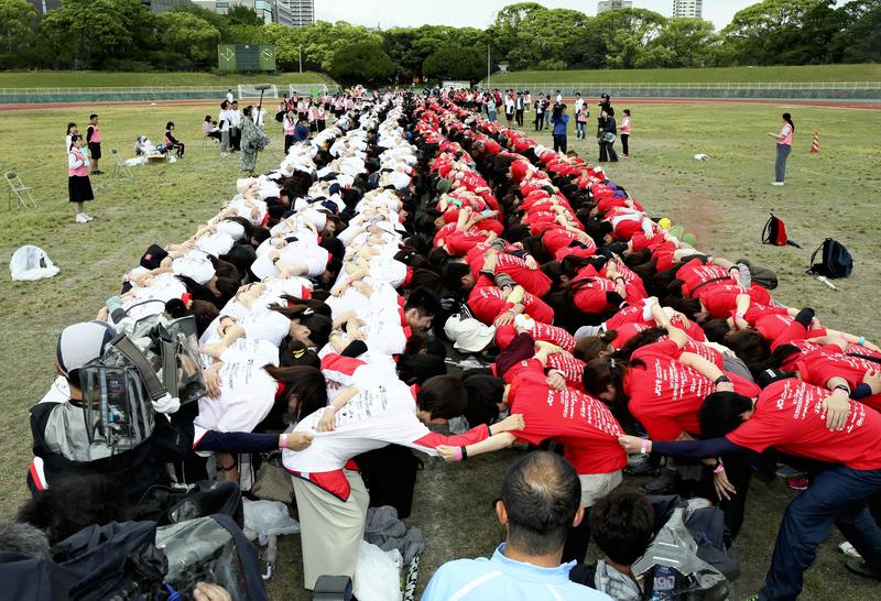 Nevertheless, the participants in Fukuoka gamely formed a scrum, exchanged high-fives and showed a good spirit of camaraderie.
