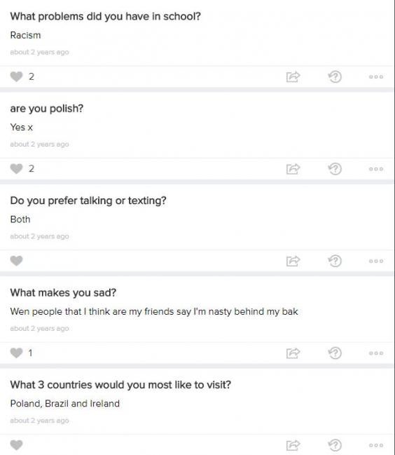 One recent message from the sporty teenager to her boyfriend Lewis Simpson read: "Not the best day at school, people saying things about me because I am from Poland. I don't even know their names."