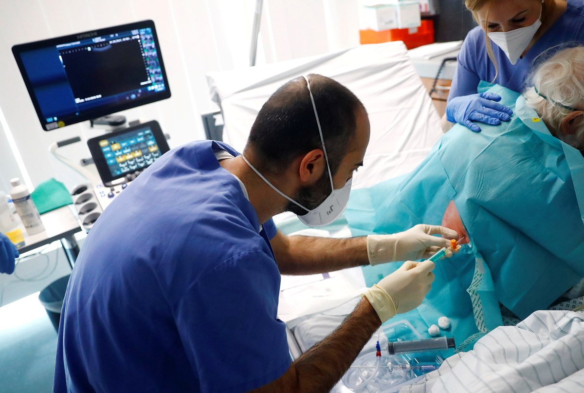 Two floors below, in the emergency room (ER), there is even more activity as senior physician Christine Hidas' team of about 10 specialists and nurses looks after 50 patients at once.