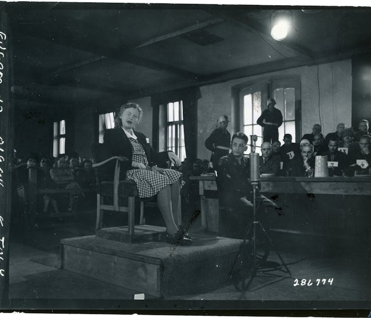 Ilse Koch on Trial reminds us that women, too, are capable of committing war crimes. It also reminds us that “such women” – who fail to conform to feminine expectations and gendered stereotypes – risk becoming cast as monsters in ways men are not. While it’s normalised that men can kill, especially in war, women are still stereotyped as peaceful and nurturing – which is reflected in the gendered reactions to women war criminals.
