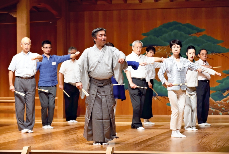 On the morning on Aug. 8, 15 people in their 20s through 70s gathered at the Kanze Noh Theater, located on the basement floor of the Ginza Six commercial complex in the Ginza district of Tokyo. They stepped onto the stage.