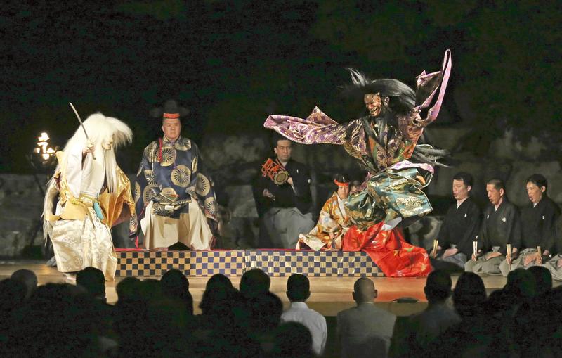 On the night of Sept. 21, I watched a takigi noh performance on a special stage set up in Higashi-Ikebukuro Chuo Koen park in Toshima Ward, Tokyo.