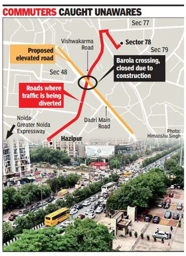 The Barola T-Point is an important junction that facilitates commuting from Noida to Surajpur in Greater Noida via DSC Road. Vishwakarma Road, which connects the 7X sectors with Hajipur, crosses the DSC Road. On Thursday, the police restricted the movement of vehicles from pillar number 59-60.