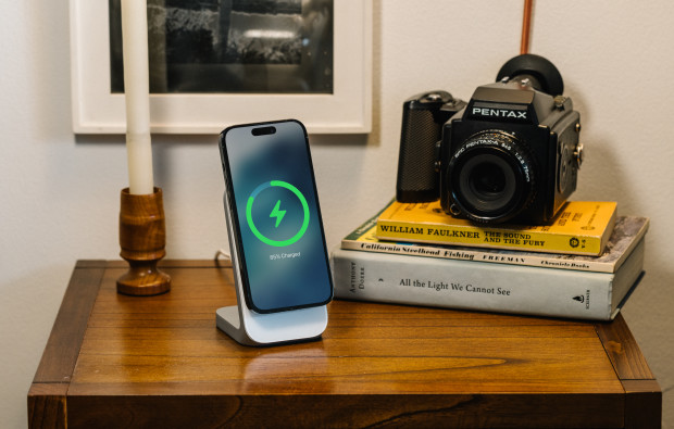 Available in a black shade called Carbide, the Base One Max is a two-in-one heavy-duty charging station for an iPhone and Apple Watch. It’s made from metal with a glass top that will look good on any surface, whether a nightstand or a counter. It has a built-in fast-charging Apple Watch puck and an MFi MagSafe charging pad to juice up an iPhone 12 or newer model quickly. Just remember to bring your own wall plug.