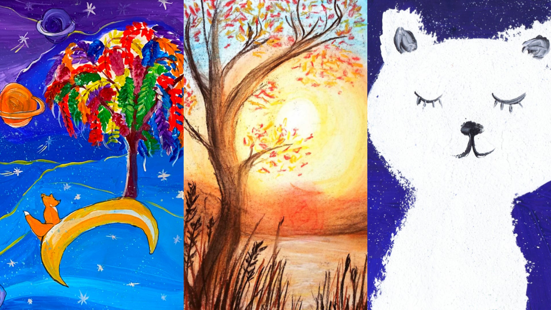 Drawings made by the children range from depictions of animals, sunny skies, oceans and cities to favourite fictional characters such as Harry Potter and Luke Skywalker.