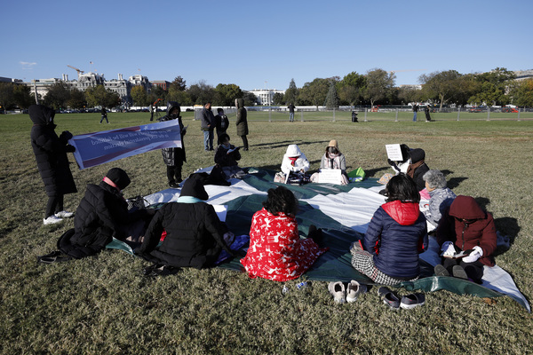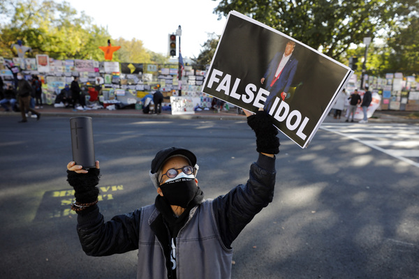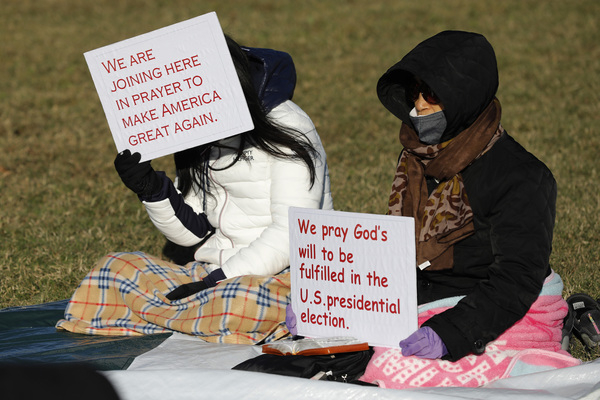People pray near the White House the day before the presidential election on Monday, Nov. 2, 2020 in Washington, D.C. (Yuri Gripas/Abaca Press/TNS)