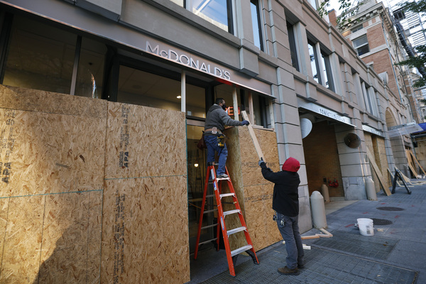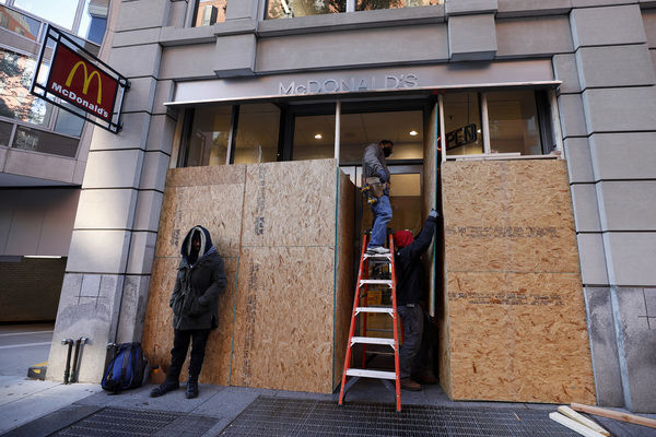 Some businesses in Washington, D.C., New York City and other big cities have boarded up or closed down in anticipation of unrest, even though the overall climate on the streets has been calmer compared to the summer.
