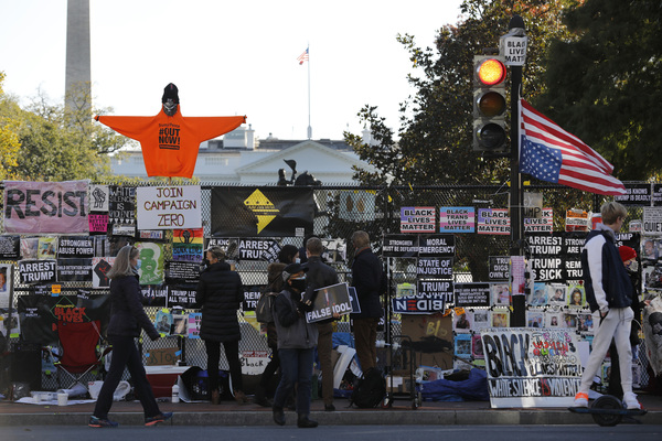 The White House is seen behind a fence with protest posters the day before the presidential election on Monday, Nov. 2, 2020 in Washington, D.C. (Yuri Gripas/Abaca Press/TNS)Protest posters are seen near the White House the day before the presidential election on Monday, Nov. 2, 2020 in Washington, D.C. (Yuri Gripas/Abaca Press/TNS)Workers place plywood over McDonalds windows near the White House the day before the presidential election on Monday, Nov. 2, 2020 in Washington, D.C. (Yuri Gripas/Abaca Press/TNS)The White House is seen behind fences the day before the presidential election on Monday, Nov. 2, 2020 in Washington, D.C. (Yuri Gripas/Abaca Press/TNS)Workers place plywood over McDonalds windows near the White House the day before the presidential election on Monday, Nov. 2, 2020 in Washington, D.C. (Yuri Gripas/Abaca Press/TNS)The White House is seen behind fences the day before the presidential election on Monday, Nov. 2, 2020 in Washington, D.C. (Yuri Gripas/Abaca Press/TNS)A woman walks past a jewelry store covered by plywood near the White House the day before the presidential election on Monday, Nov. 2, 2020 in Washington, D.C. (Yuri Gripas/Abaca Press/TNS)People pray near the White House the day before the presidential election on Monday, Nov. 2, 2020 in Washington, D.C. (Yuri Gripas/Abaca Press/TNS)Workers place plywood over hotel windows near the White House the day before the presidential election on Monday, Nov. 2, 2020 in Washington, D.C. (Yuri Gripas/Abaca Press/TNS)A man walks past windows covered by plywood near the White House the day before the presidential election on Monday, Nov. 2, 2020 in Washington, D.C. (Yuri Gripas/Abaca Press/TNS)A man walks past a Joe Biden poster near the White House the day before the presidential election on Monday, Nov. 2, 2020 in Washington, D.C. (Yuri Gripas/Abaca Press/TNS)A protester sits near the White House the day before the presidential election on Monday, Nov. 2, 2020 in Washington, D.C. (Yuri Gripas/Abaca Press/TNS)Workers place plywood over McDonalds windows near the White House the day before the presidential election on Monday, Nov. 2, 2020 in Washington, D.C. (Yuri Gripas/Abaca Press/TNS)Protest posters are seen near the White House the day before the presidential election on Monday, Nov. 2, 2020 in Washington, D.C. (Yuri Gripas/Abaca Press/TNS)The White House is seen behind a fence with protest posters the day before the presidential election on Monday, Nov. 2, 2020 in Washington, D.C. (Yuri Gripas/Abaca Press/TNS)The White House is seen behind fences the day before the presidential election on Monday, Nov. 2, 2020 in Washington, D.C. (Yuri Gripas/Abaca Press/TNS)Protest posters are seen near the White House the day before the presidential election on Monday, Nov. 2, 2020 in Washington, D.C. (Yuri Gripas/Abaca Press/TNS)A police notice is posted near the White House the day before the presidential election on Monday, Nov. 2, 2020 in Washington, D.C. (Yuri Gripas/Abaca Press/TNS)An anti-Trump protester demonstrates near the White House the day before the presidential election on Monday, Nov. 2, 2020 in Washington, D.C. (Yuri Gripas/Abaca Press/TNS)Workers place plywood over hotel windows near the White House the day before the presidential election on Monday, Nov. 2, 2020 in Washington, D.C. (Yuri Gripas/Abaca Press/TNS)The White House is seen behind fences the day before the presidential election on Monday, Nov. 2, 2020 in Washington, D.C. (Yuri Gripas/Abaca Press/TNS)Workers place plywood over Bank of America windows near the White House the day before the presidential election on Monday, Nov. 2, 2020 in Washington, D.C. (Yuri Gripas/Abaca Press/TNS)An anti-Trump protester demonstrates near the White House the day before the presidential election on Monday, Nov. 2, 2020 in Washington, D.C. (Yuri Gripas/Abaca Press/TNS)People pose for pictures with protest posters near the White House the day before the presidential election on Monday, Nov. 2, 2020 in Washington, D.C. (Yuri Gripas/Abaca Press/TNS)An anti-Trump protester demonstrates near the White House the day before the presidential election on Monday, Nov. 2, 2020 in Washington, D.C. (Yuri Gripas/Abaca Press/TNS)A man walks past a Kamala Harris poster near the White House the day before the presidential election on Monday, Nov. 2, 2020 in Washington, D.C. (Yuri Gripas/Abaca Press/TNS)