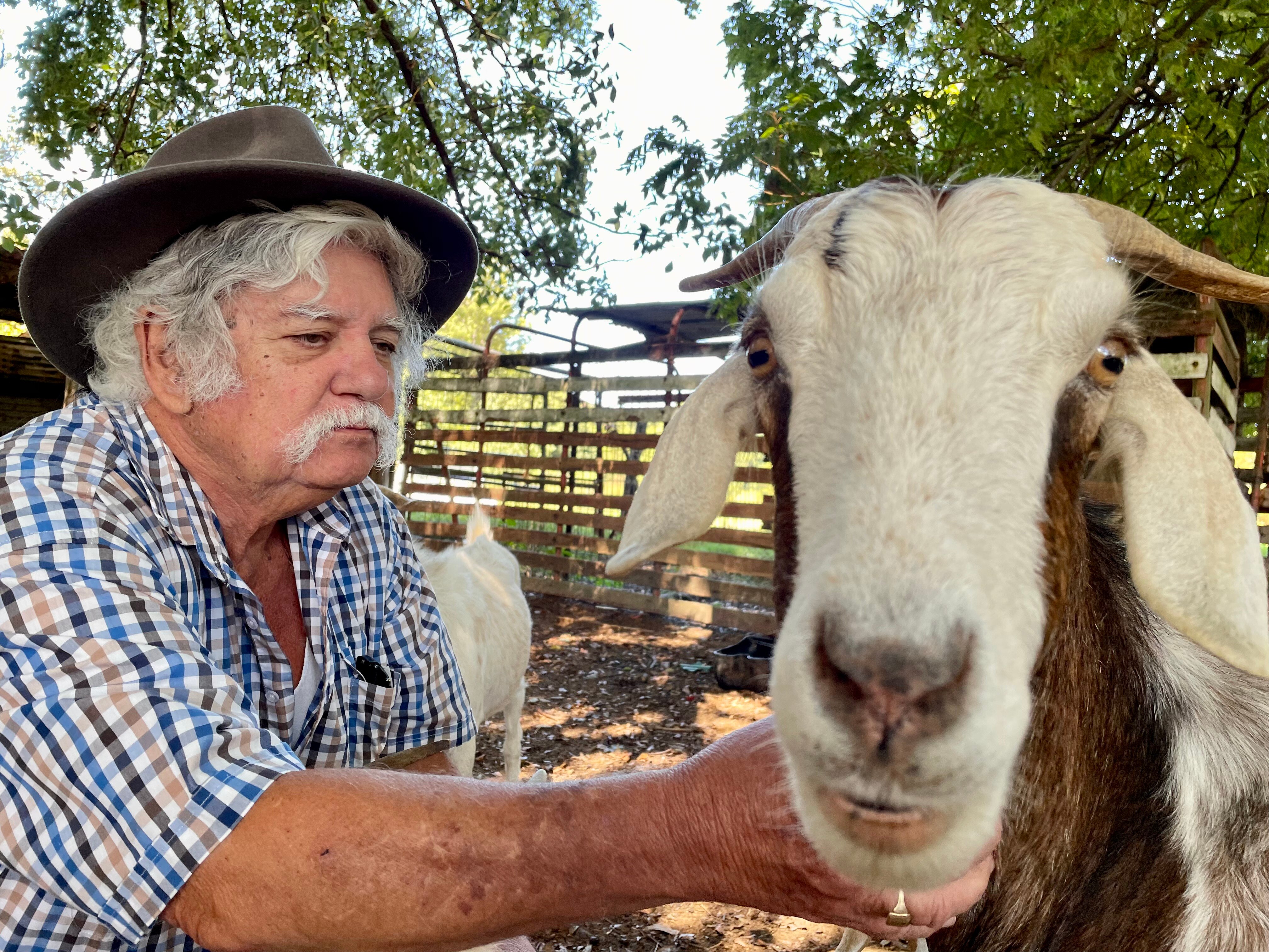 Retired Kin Kin dairy farmer Russell Davis said Marshmallow, Bobby, Woody and Bluey were among 12 surviving goats locked up for safety at his property.