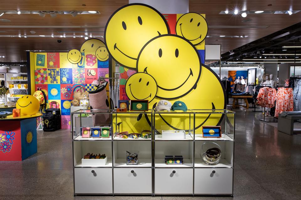 Olivia Kim, VP of Creative Projects and Home at Nordstrom, who curates that retailer’s Pop-in installations, called the Smiley shop “a bright and optimistic collection of merchandise that feature everyone’s favorite logo.”