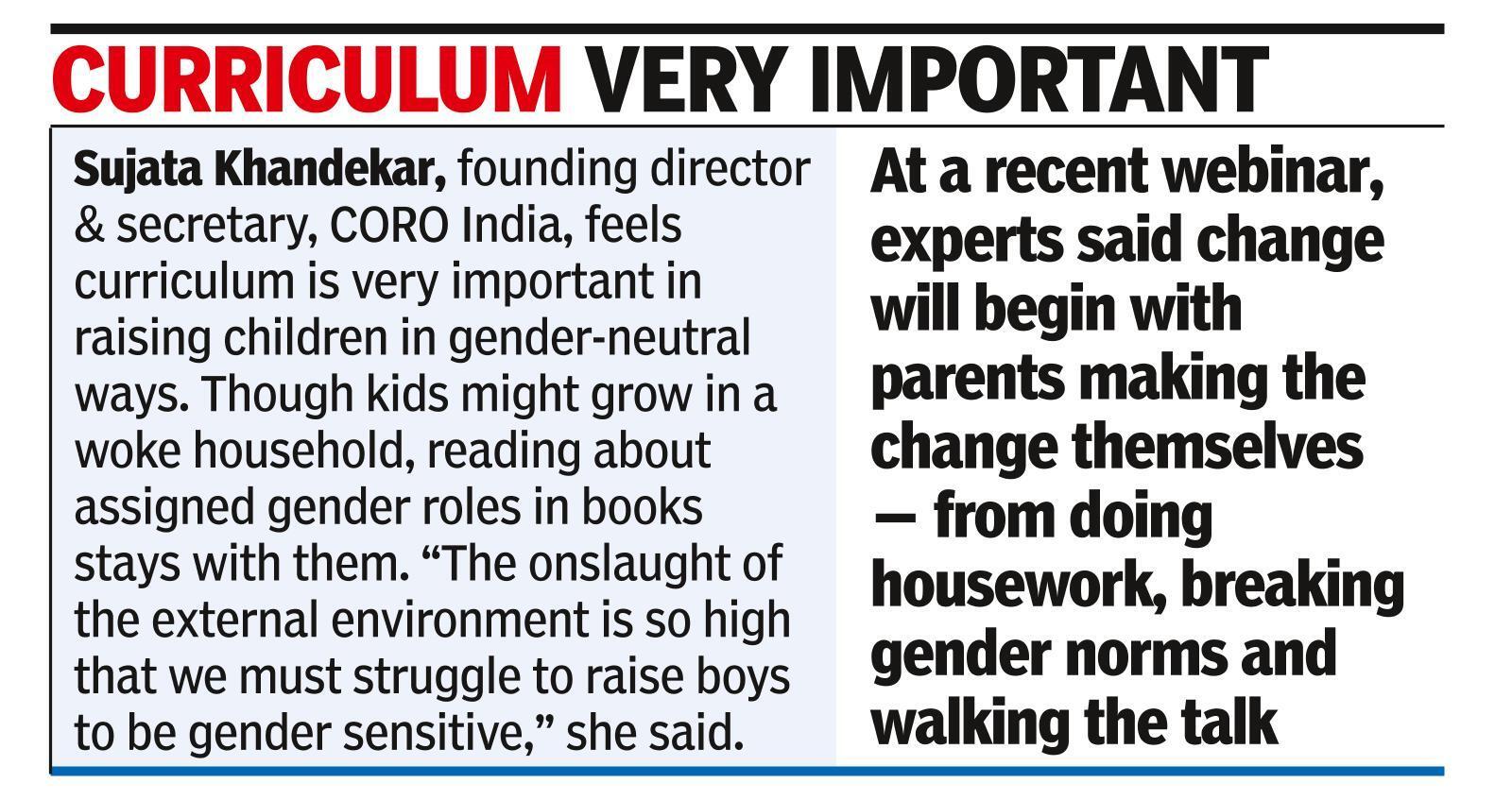 BENGALURU: From breaking gender boundaries at home to keeping an eye on external factors and using non-patriarchal language, parents need to tread the smart route to raise their children, especially boys, to ensure they are gender equitable.