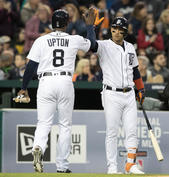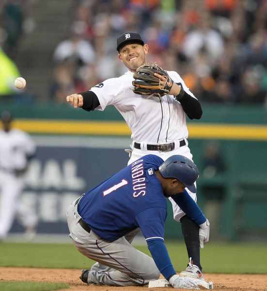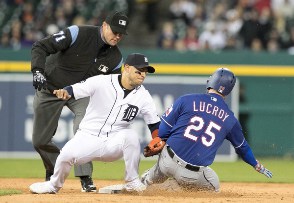 The rally began with a Justin Upton double. Nick Castellanos was hit by a pitch and Rangers shortstop Elvis Andrus overthrew an inning-ending force out at second base before Romine's single.