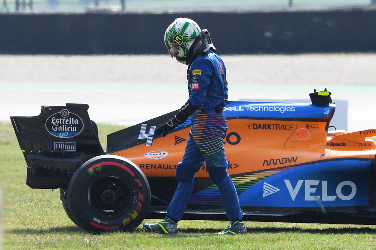 McLaren's Lando Norris crashed in practice for the Tuscan Grand Prix at Mugello on Friday but his spirits were lifted by Formula One allowing fans back into the grandstands for the first time in a COVID-19 ravaged season.