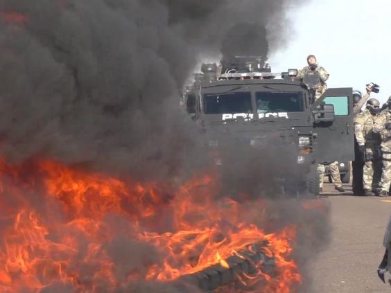 A police operation to remove protesters from the path of an oil pipeline in North Dakota erupted into chaos yesterday, with officers in riot gear firing rubber bullets and pepper spray.