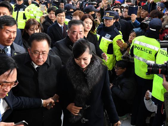 South Korean police intervened when one group of conservative critics burned a picture of North Korean leader Kim Jong Un on the steps of Seoul's central train station where Hyon and the rest of her team had earlier arrived from Gangwon province, where the Olympics will be held from 9 February.