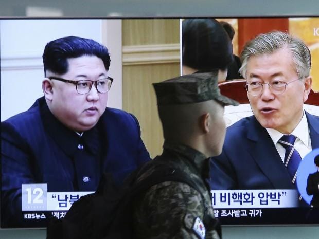 The commitment to denuclearise while allowing US forces to remain, conveyed via a South Korean leader who has prioritised better relations with the North, continued diplomatic manoeuvring ahead of high-stakes talks. Earlier this month CIA director Mike Pompeo met with Mr Kim in Pyongyang, and Mr Trump said efforts are on pace to convene talks by June.