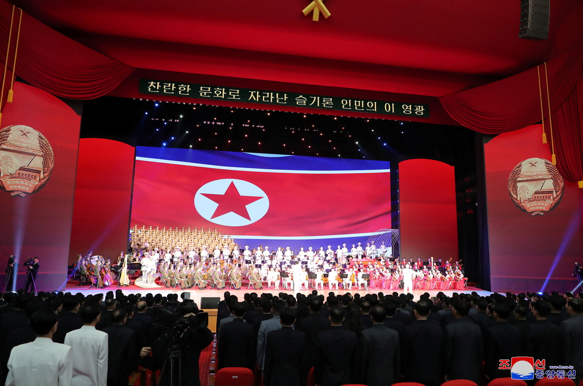 Guests stand up during a performance as North Korean leader Kim Jong Un and his wife, Ri Sol Ju, attend a celebration to mark the birthday of Kim Il Sung, in Pyongyang, in this photo supplied by North Korea's Korean Central News Agency (KCNA) on April 16, 2021. KCNA via REUTERS The statues of Kim Il Sung and Kim Jong Il are pictured during a visit at the Kumsusan Palace of Sun as North Korean leader Kim Jong Un and his wife, Ri Sol Ju pay tribute to Kim Il Sung, to mark the birthday of the founder of the state, in Pyongyang, in this photo supplied by North Korea's Korean Central News Agency (KCNA) on April 16, 2021. KCNA via REUTERS