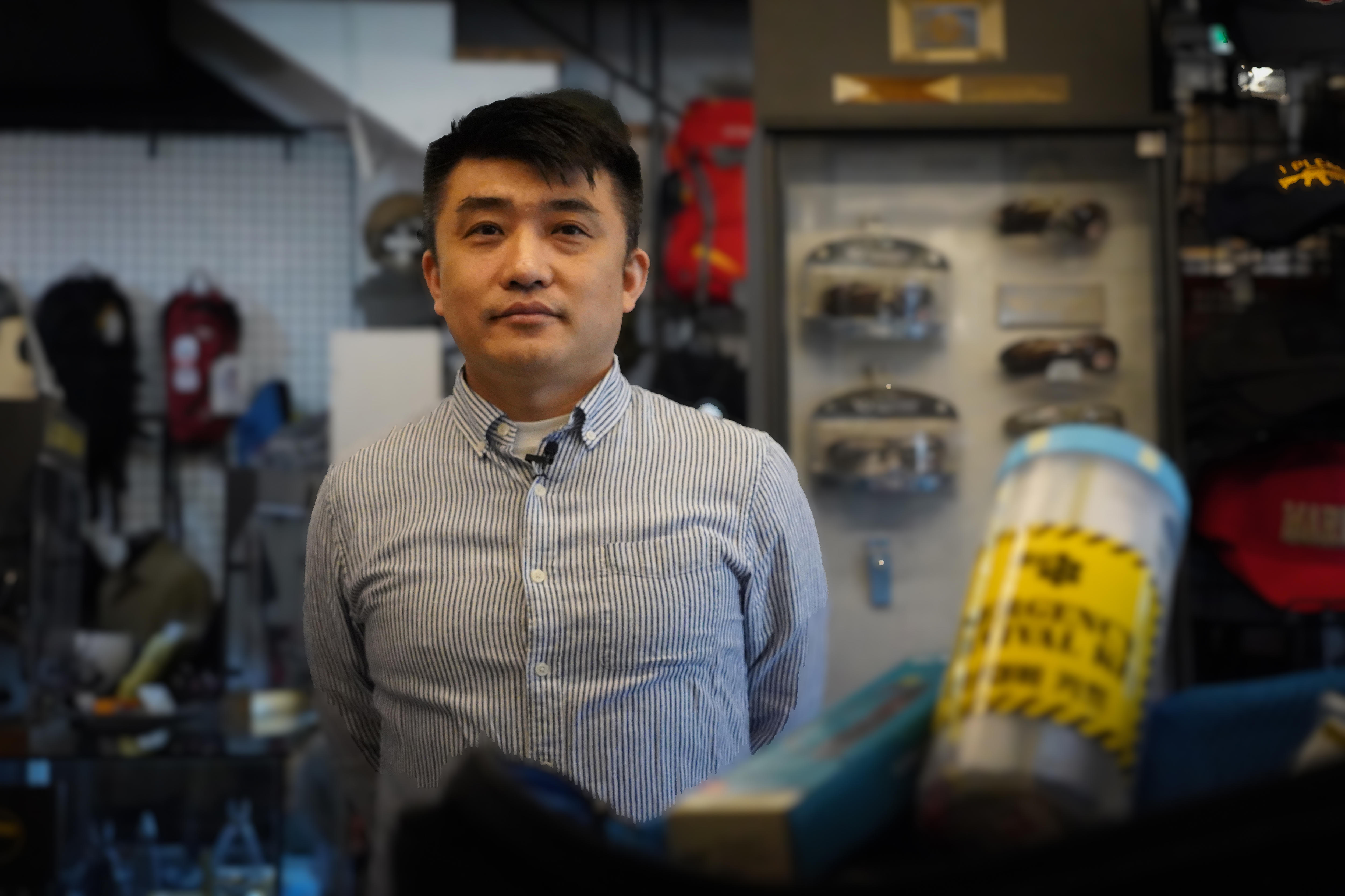 Kim Hyun-tak runs a small business selling outdoor equipment and emergency supplies.