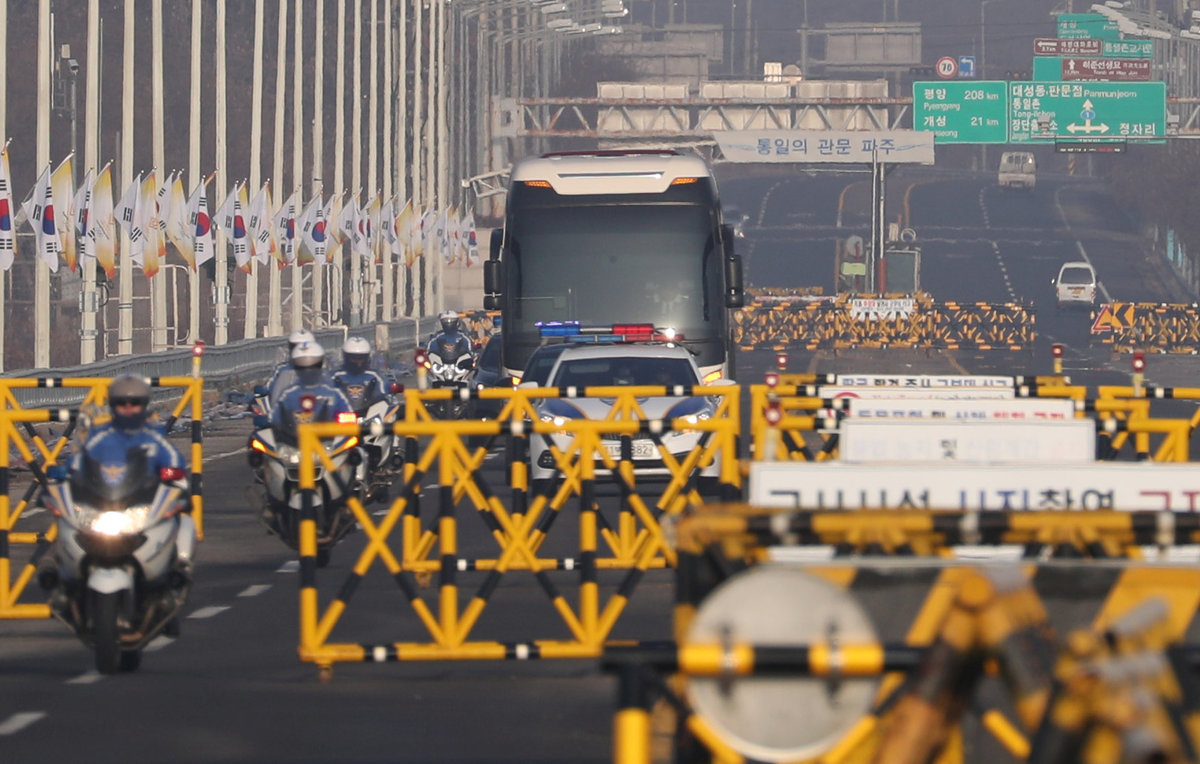 South Korean broadcaster YTN reported the delegation had arrived in Seoul early Sunday under a heavy police presence, then boarded a train to Gangwon province, where the Olympics will be held from Feb. 9-25.