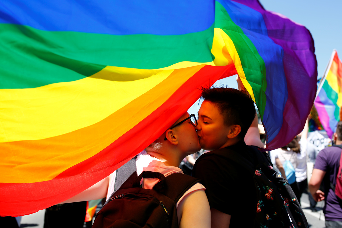 Participants kiss as they take part in the first Gay Pride parade in Skopje, North Macedonia June 29, 2019. REUTERS/Ognen Teofilovski