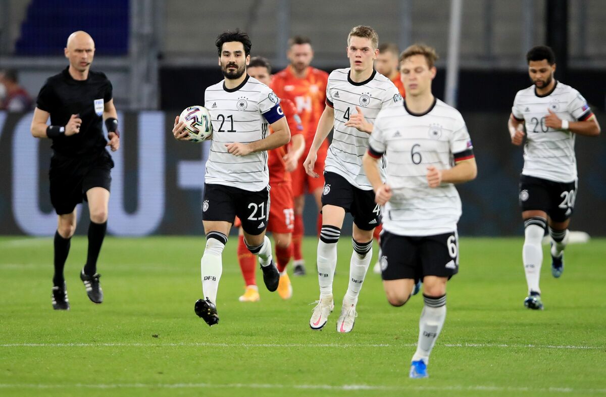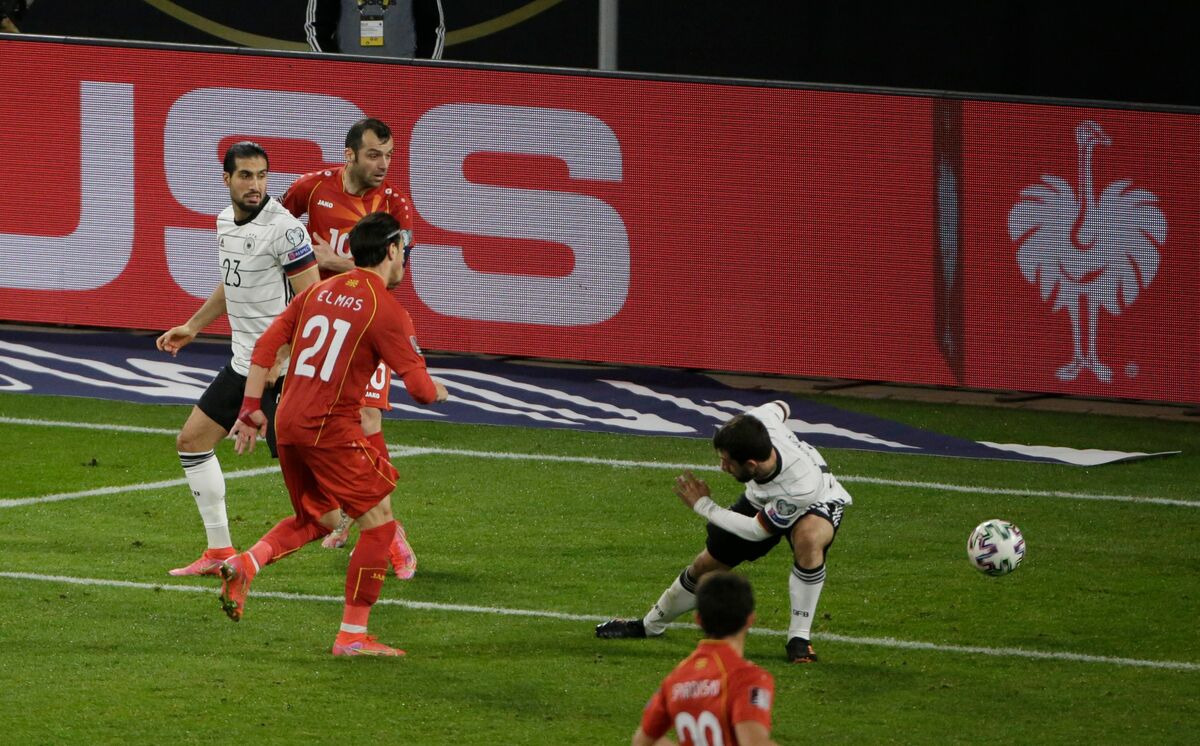 Despite Germany's 70% possession in the first half and Leon Goretzka's shot onto the crossbar, it was the visitors who scored when 37-year-old Goran Pandev was left unmarked in the box to tap home in first half stoppage time.