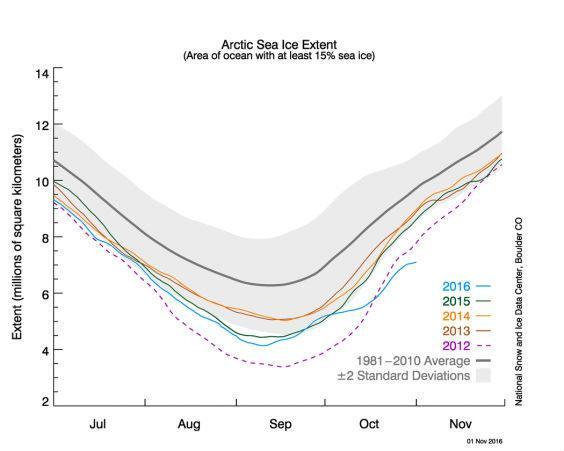 The month of November was an incredible 18 degrees warmer than normal in the Arctic, the National Snow and Ice Data said.