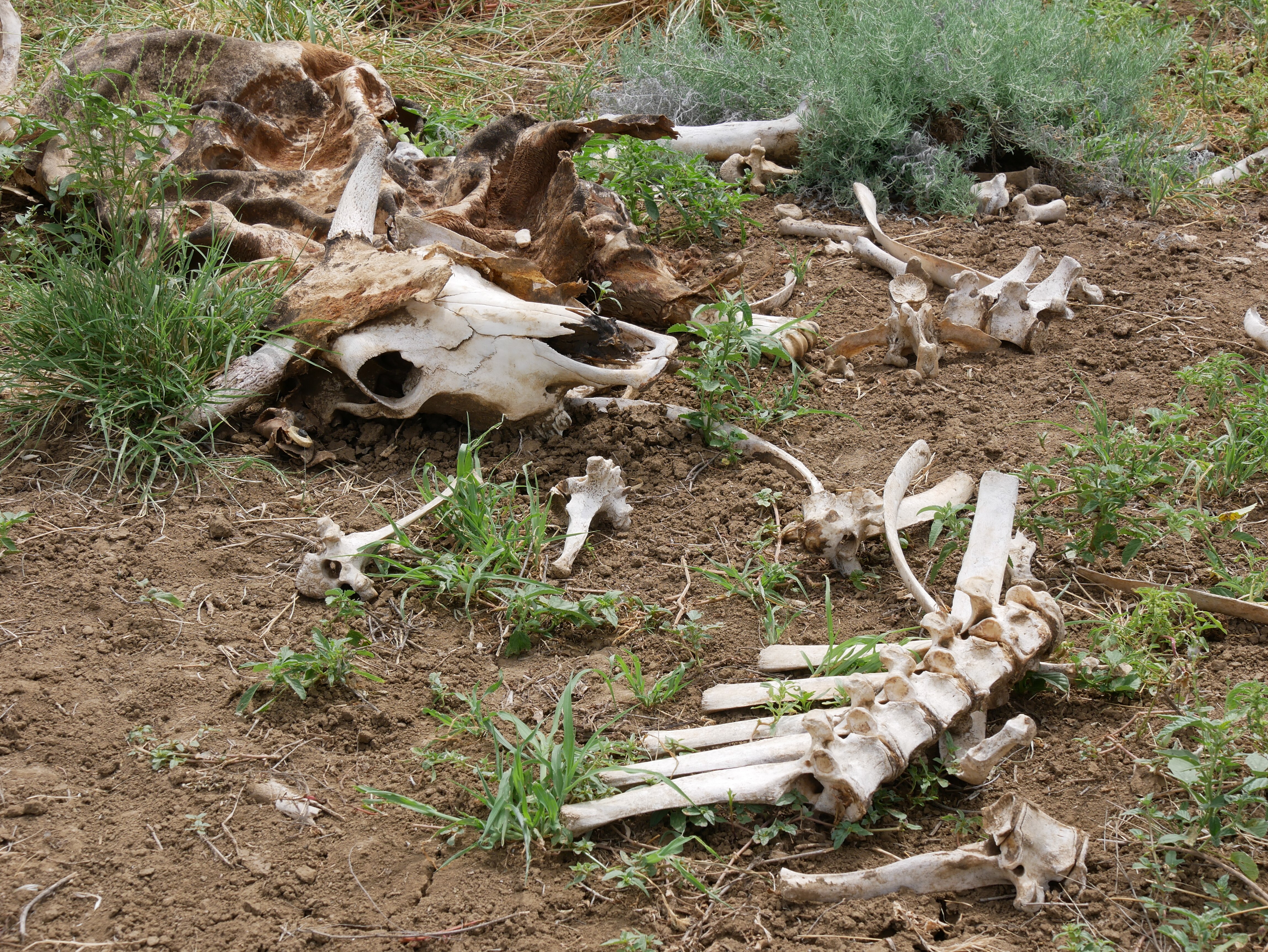 Carcasses of cattle, the "victims of drought", lay in paddocks metres away from watering troughs where healthy, fat cattle drink.