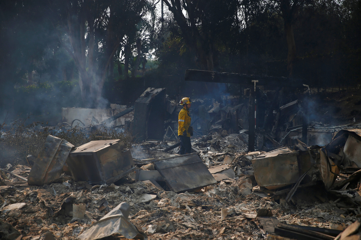 In Ventura County, most of the town of Thousand Oaks was ordered evacuated, adding to the anguish days after a gunman killed 12 people in a shooting rampage at a bar.