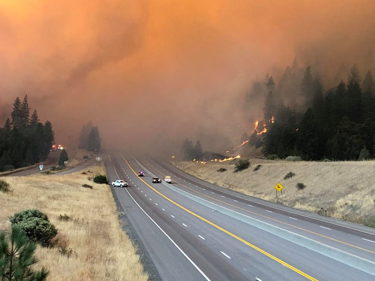 On Wednesday, the blaze raced across the Interstate-5 highway, forcing motorists to flee on foot before flames engulfed their cars and trucks, said Brandon Vaccaro, a spokesman for the Delta fire command team.