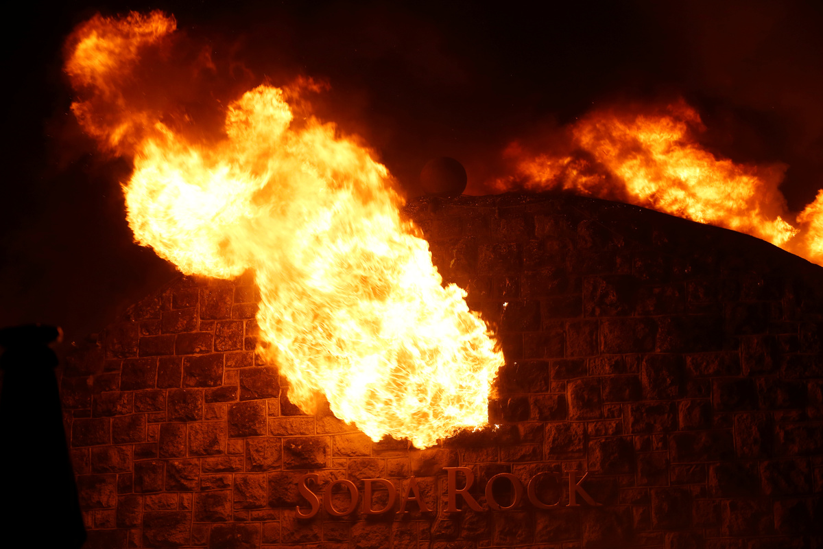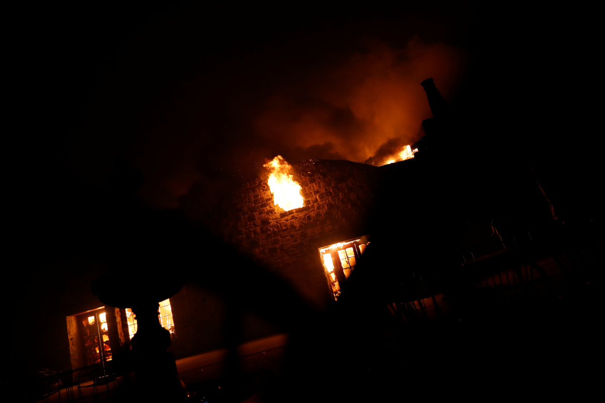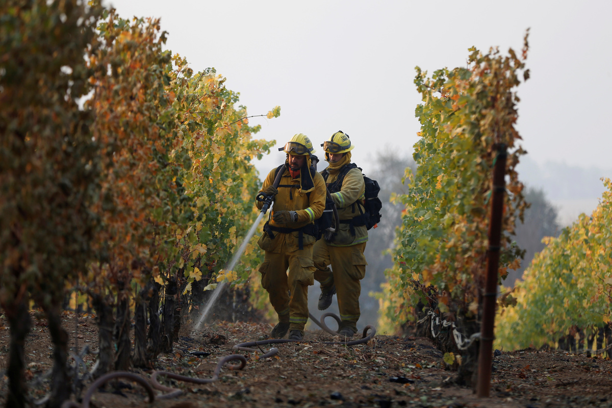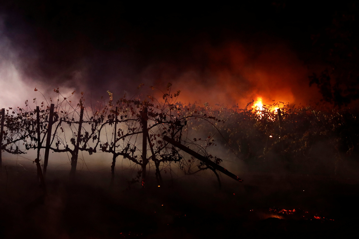 HEALDSBURG, Calif. (Reuters) - Crews lost ground on Sunday against a wind-driven wildfire that has blackened a wide swath of California's picturesque wine country and driven 180,000 people from their homes as they hoped for a break in the hot, dry weather.