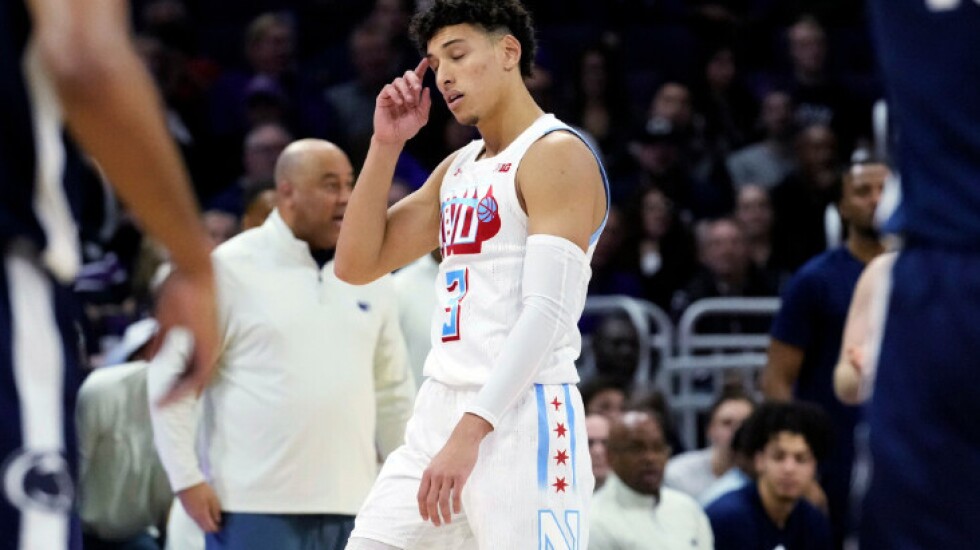 Following a Northwestern timeout and having to go the length of the floor, Boo Buie caught the half-court inbounds pass, dribbled once, turned, shot and nearly banked it in as time expired.