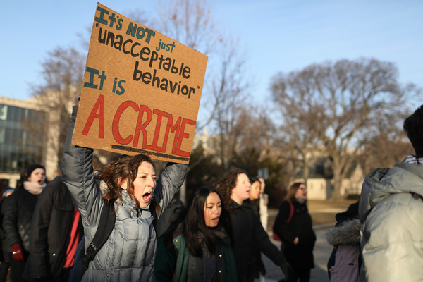 It was billed as a rally to support survivors of sexual assault, condemn the assault allegations and challenge the institutions and environments that facilitate that type of violence, organizers said.