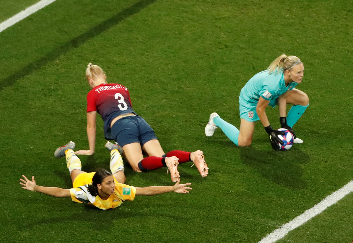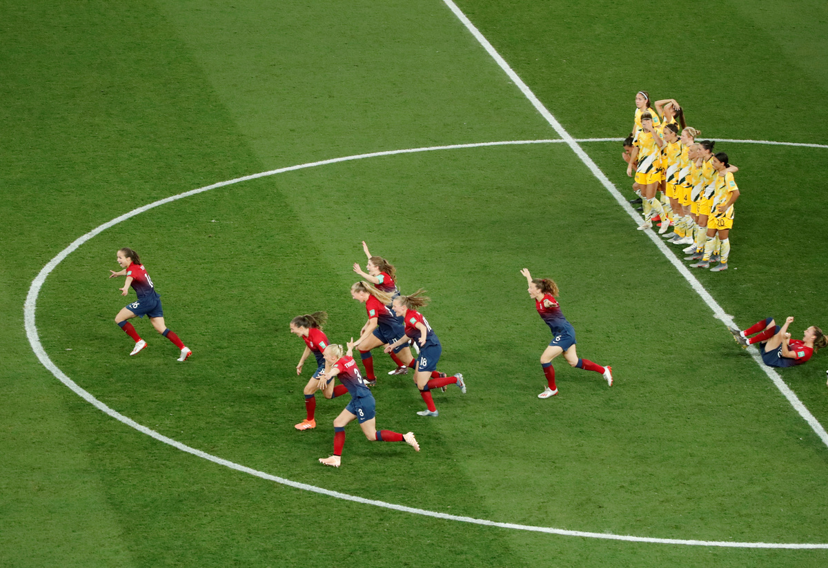 NICE, France (Reuters) - Norway beat Australia 4-1 on penalties to reach the women's World Cup quarter-finals for the first time since 2007 following a highly-entertaining 1-1 draw after extra time on Saturday.
