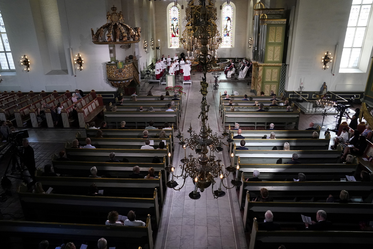The church bells rang out for five minutes after the service, starting at 1210 CET (1010 GMT).