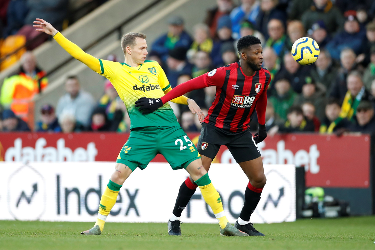 Soccer Football - Premier League - Norwich City v AFC Bournemouth - Carrow Road, Norwich, Britain - January 18, 2020 Norwich City's Alexander Tettey in action with Bournemouth's Philip Billing Action Images via Reuters/Andrew Boyers