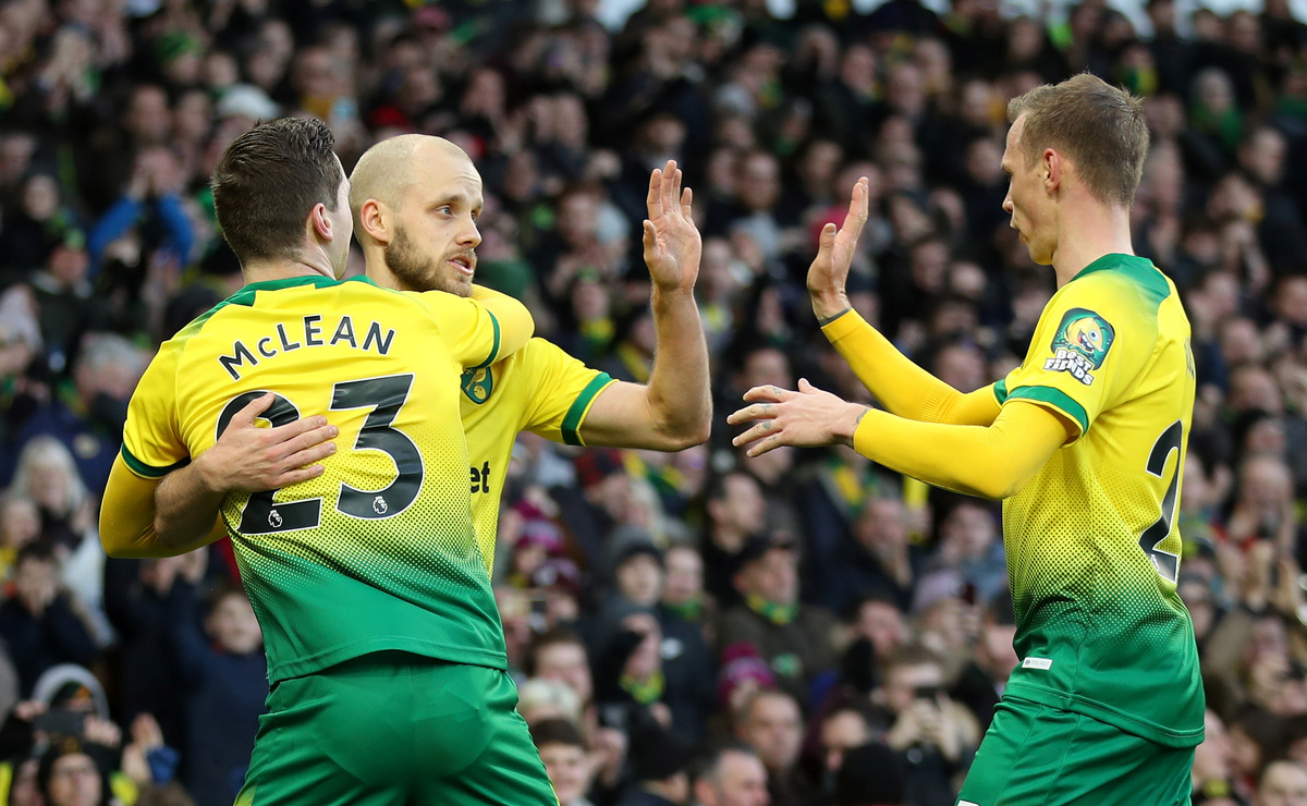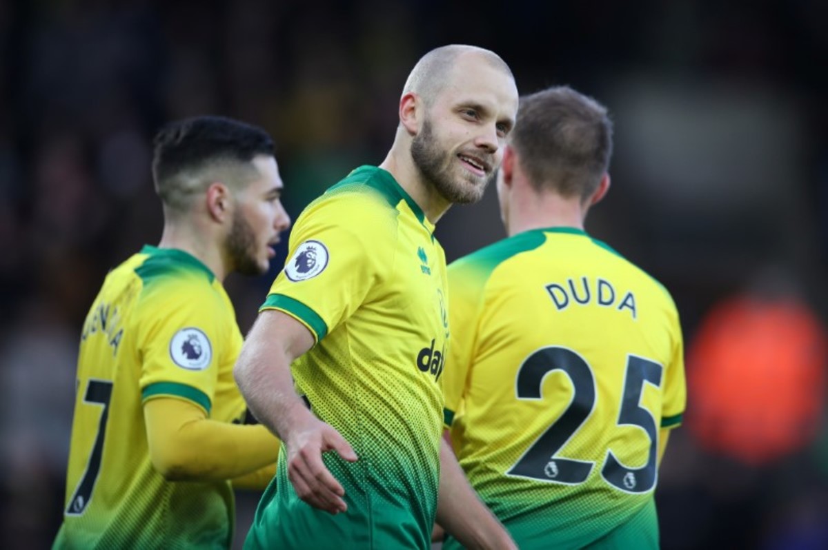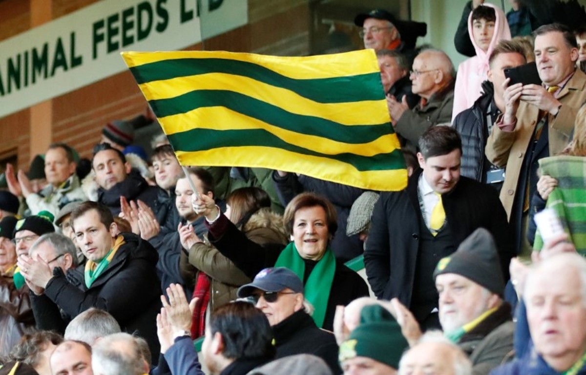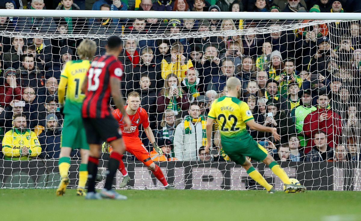 Soccer Football - Premier League - Norwich City v AFC Bournemouth - Carrow Road, Norwich, Britain - January 18, 2020 Bournemouth's Adam Smith in action with Norwich City's Sam Byram Action Images via Reuters/Andrew Boyers Soccer Football - Premier League - Norwich City v AFC Bournemouth - Carrow Road, Norwich, Britain - January 18, 2020 Norwich City owner Delia Smith waves a flag before the match Action Images via Reuters/Andrew Boyers Soccer Football - Premier League - Norwich City v AFC Bournemouth - Carrow Road, Norwich, Britain - January 18, 2020 Norwich City's Teemu Pukki scores their first goal from the penalty spot Action Images via Reuters/Andrew Boyers Soccer Football - Premier League - Norwich City v AFC Bournemouth - Carrow Road, Norwich, Britain - January 18, 2020 Norwich City's Teemu Pukki celebrates scoring their first goal from the penalty spot REUTERS/Chris Radburn Soccer Football - Premier League - Norwich City v AFC Bournemouth - Carrow Road, Norwich, Britain - January 18, 2020 Norwich City's Teemu Pukki scores their first goal from the penalty spot REUTERS/Chris Radburn Soccer Football - Premier League - Norwich City v AFC Bournemouth - Carrow Road, Norwich, Britain - January 18, 2020 Norwich City's Emiliano Buendia in action with Bournemouth's Philip Billing REUTERS/Chris Radburn