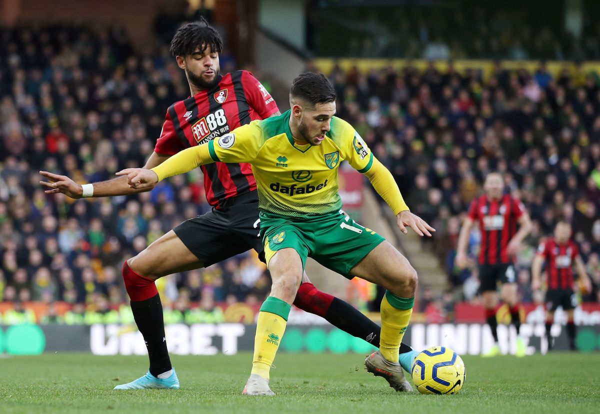 Soccer Football - Premier League - Norwich City v AFC Bournemouth - Carrow Road, Norwich, Britain - January 18, 2020 Bournemouth's Philip Billing in action with Norwich City's Emiliano Buendia REUTERS/Chris Radburn