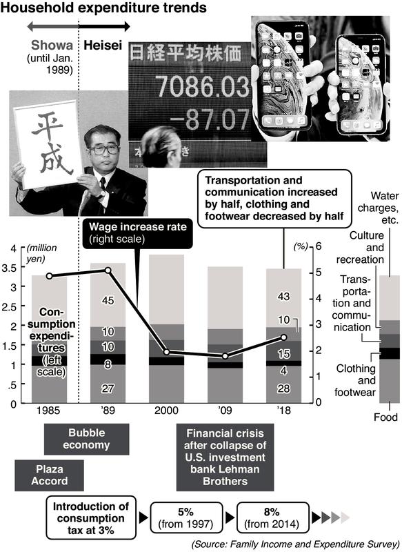 The Heisei era, which began in 1989 during the bubble economy, was also a period when domestic consumption patterns gradually changed.