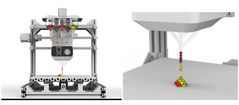- A “flavor journey” experience of a multi-course meal 3D printed into a single food bar
