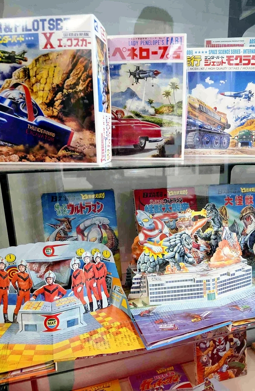A special corner displays about 200 items, including original drawings by Shigeru Komatsuzaki (1915-2001), known for his paintings for boxes containing plastic models, and for sci-fi illustrations for boys' magazines. The museum inherited the items from Showa Roman Kan, which used to be located in Matsudo in the prefecture and was closed due to the Great East Japan Earthquake.