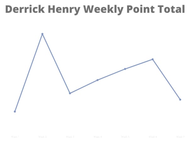 Let’s start with Derrick Henry. The Titans running back is second among all scorers in average points (26.6) and total points scored (186.5). He’s on pace to shatter carry totals, his own rushing yardage record and a bunch of other records. That’s all great, but is he consistent?