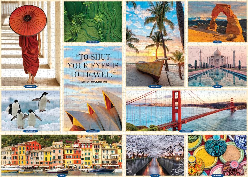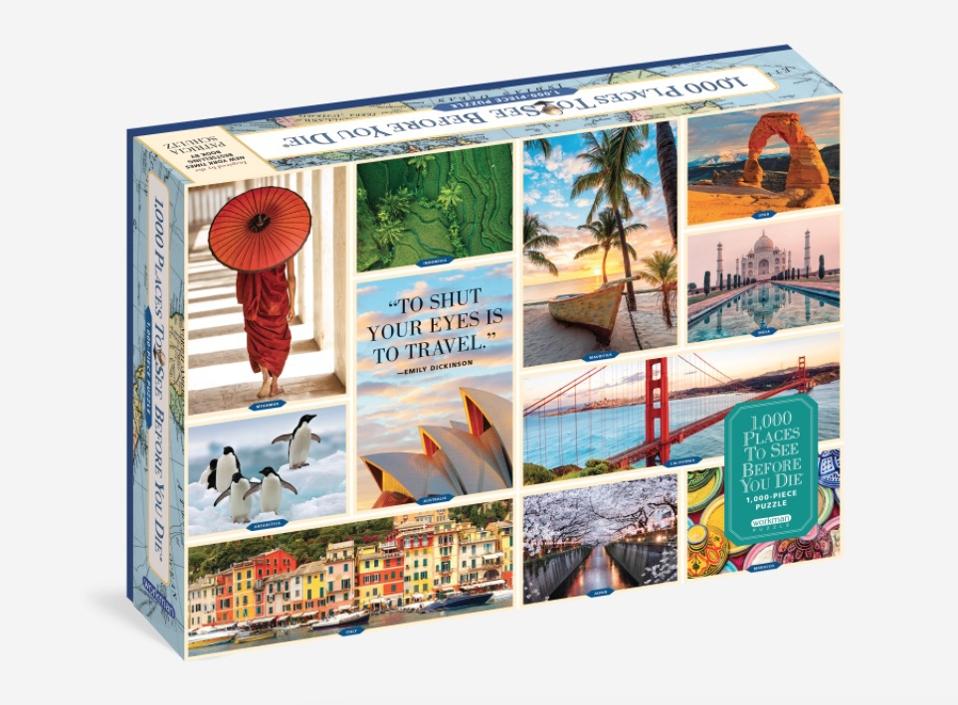 Missing the natural beauty you seek out on vacation? This pastel-toned puzzle features a dozen tranquil scenes from wintery woods to stunning sunsets and scenic seascapes. The views are picture postcard-worthy. Plus, Cloudberries plants an actual tree for each puzzle sold. They can also take you on an Epicurean food tour and a Celestial tour of the night sky. Price: $21.99