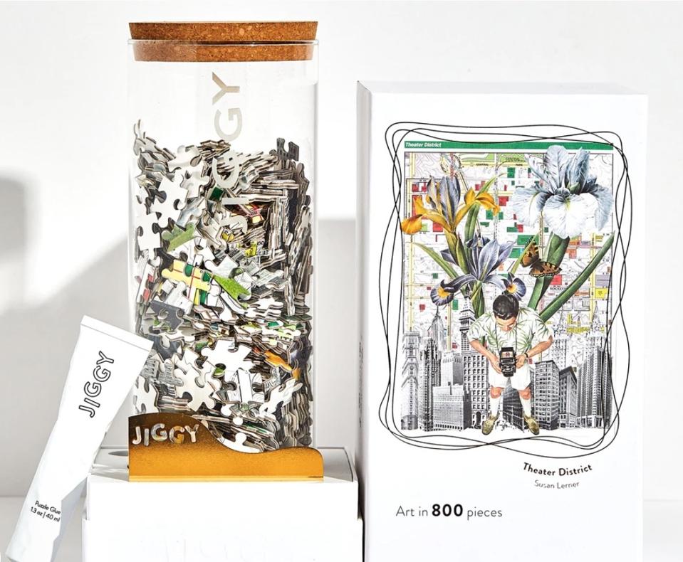 JIGGY is all about supporting female artists – like collage artist, Susan Lerner, who created this eye-popping 800-piece New York City puzzle. Like all JIGGY puzzles, it comes in a reusable glass jar and includes a tube of puzzle glue and straight-edge tool for spreading it because you’ll want to frame it when you’re done. JIGGY can also take you Bathing With Flowers or let you relax in Irv’s Corner. Price: $49