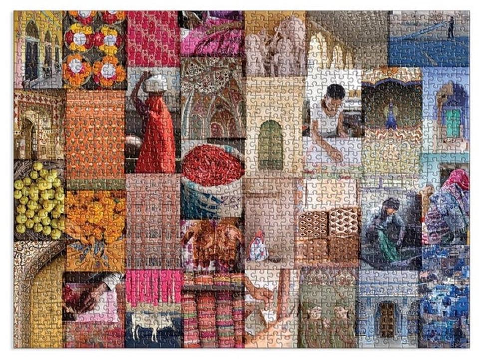 You can almost smell the spices and feel the textures of the handmade rugs sold in the Moroccan markets through this vividly colored 1000-piece puzzle. Illustrated by Australian artist, Miranda Sofroniou, it places you right in the heart of the action and is so realistic, you may find yourself haggling over the price. Piece & Love by eeBoo can also take you to Berlin and Sweden. Price: $23.99